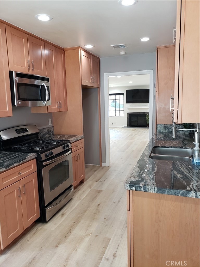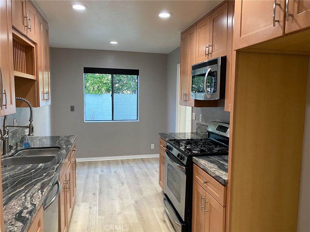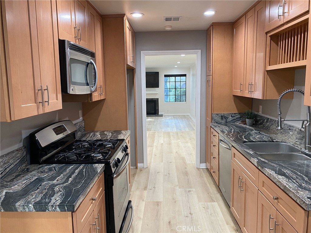 Situated in Studio City, this 2-story, 3 bedroom/2.5 bathroom townhouse features a spacious floorplan with attached garage in a quaint, four unit building. The front door opens from tree lined Van Noord Avenue. No lobbies or long hallway navigation. Downstairs, you'll find durable wood grain vinyl laminate tile flooring throughout. A living room with fireplace, kitchen with plentiful cabinets, washer/dryer closet, a bedroom that makes a perfect home office or studio, two cedar-lined closets, a half bathroom, and direct access to a 2-car tandem parked garage. The stairway leading upstairs is accented with a sleek aluminum banister with cables. The second floor features a primary bedroom suite with a walk-in closet and large windows with views of hillside homes. The secondary bedroom has a shaded balcony that makes for a nice respite and breath of fresh air. Just off the hallway: two linen cabinets and a full bathroom. Nest® thermostat, doorbell, and (2) exterior security cameras are installed and included. The exterior of the building was just painted. Low monthly HOA and a great location. Here, you're close to everything. Just steps away from delicious Italian fare at Pagliacci’s, the infamous M+M Market and Hardy's Meat Market (hot tip: do not miss their weekend parking lot BBQ.) Ready for coffee? Head west down Moorpark to M Street Coffee. Ready to shop, eat, or hit the gym? Take a stroll south on Coldwater Canyon and you'll find it all at The Shops at Sportsman’s Lodge. Have elementary-aged children? Your home school is Dixie Canyon Community Charter School. If you must drive, you're just minutes away from the 101 freeway, as well as all the major valley streets.