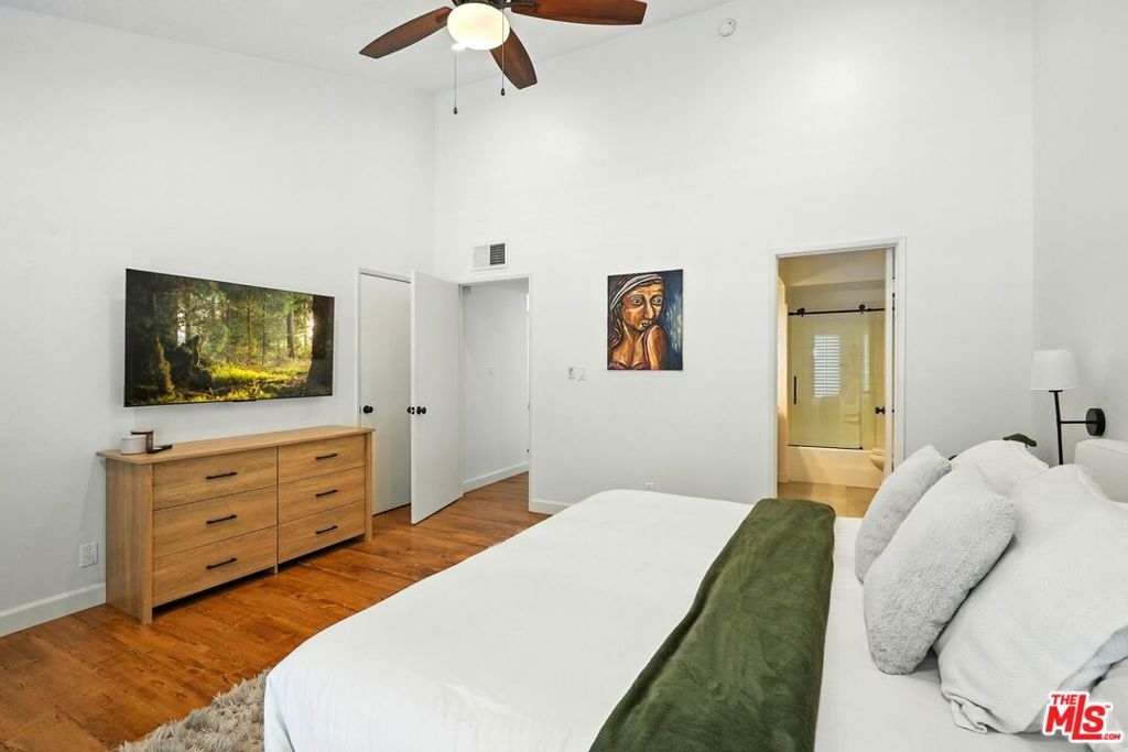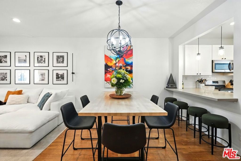 Nestled in the vibrant heart of Studio City, this delightful townhouse at 13012 Valleyheart Drive, Unit 6, offers a blend of comfort and modern elegance. This 2-bedroom, 3-bathroom gem is part of an intimate 8-unit gated community. Step inside and be charmed by high ceilings and an open layout that will effortlessly accommodate your lifestyle. Anchored by a cozy fireplace, the living room is light and bright and opens to the dining area & kitchen, perfect for entertaining. The remodeled kitchen is a chef's dream with quartz countertops, breakfast bar, stainless steel appliances, and ample storage. Upstairs, the spacious primary suite offers vaulted ceilings, a balcony for evening night caps, and a lavish bathroom featuring double sinks, a walk-in closet, and an exclusive vanity area. The second bedroom also offers an ensuite bath/shower combo. Convenience reigns with an in-unit washer and dryer, and a guest powder room on the first floor. An additional private storage unit is located in the garage. Community amenities include a sparkling pool and security gates for peace of mind. The HOA dues covers water, trash, earthquake insurance, security cameras, and ground maintenance. With 2 secure parking spots included, you're just minutes from the eclectic dining, shopping and fitness of Ventura Boulevard, including the beloved Philz Coffee, Lynx Coffee, Twinty Cafe, the legendary Casa Vega Mexican Restaurant, Le Pain Quotidian bakery, Homestate Tacos, Le Petit Restaurant, the Great Greek, Erewhon, Equinox and many other wonderful eateries, shoppes, theaters and nightspots. In addition, the Studio City River Walk is right across the street from the complex where friends, neighbors and pets commune. Ready to embrace a cozy yet stylish lifestyle in Studio City? This home is your perfect match!
