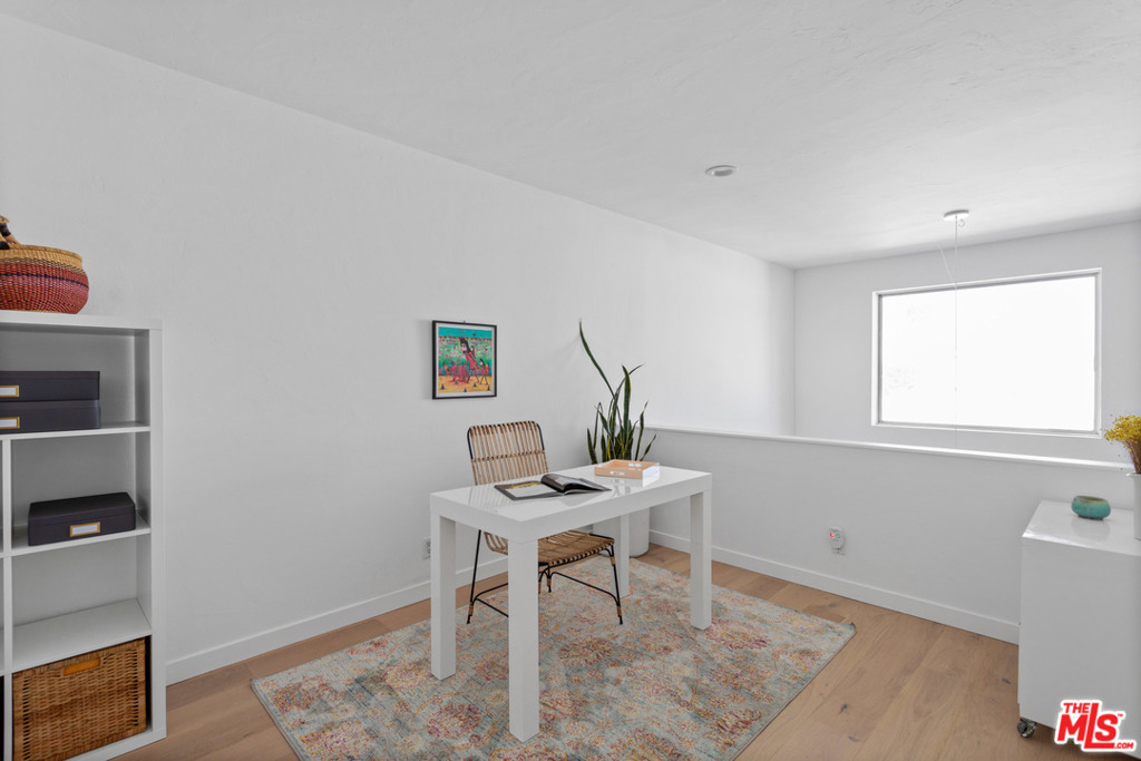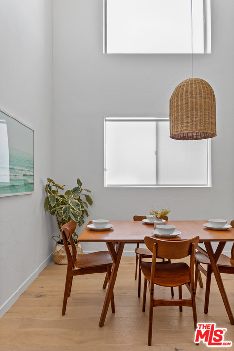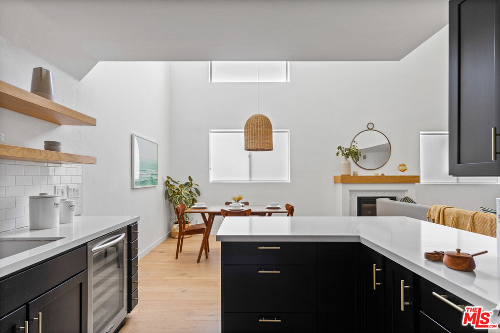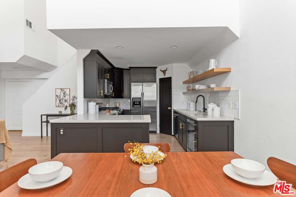 This coveted split-level penthouse was thoughtfully renovated in 2018, bringing to life its full architectural potential. Soaring ceilings allow natural light to pour in across the white oak floors and throughout the open concept living and dining area. The sleek, contemporary kitchen boasts a neutral palette with quartz countertops, wood and brass accents, and a built-in wine fridge. A separate loft space perched above the kitchen offers a multitude of functions, perfect for home office or studio. One of the two spacious bedrooms downstairs is en-suite, and the upstairs en-suite opens onto a private rooftop deck with custom built-ins and an outdoor bed and bench. 13030 Valleyheart is nestled in between Ventura Blvd and the LA River trail, giving you equal opportunity to head out the door for a quiet bike ride or to any of the dozens of beloved institutions along the Blvd. Iroha Sushi, LPQ, Casa Vega, Bluebird, Erewhon, and the Studio City Farmers Market are all nearby, and the full opening of the Shops at Sportsmens Lodge--including an Equinox--is imminent.