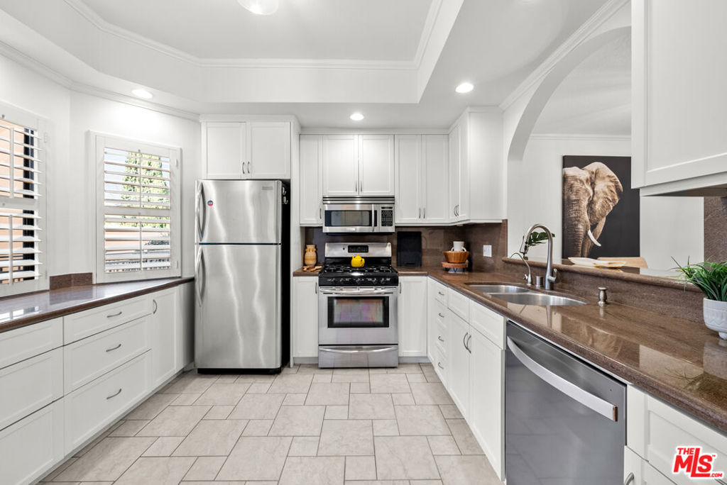 Nestled in an exclusive 5-unit building in the vibrant neighborhood of Studio City, CA. This beautifully updated residence offers modern living space, featuring 2 spacious bedrooms with vaulted ceilings and 2.5 luxurious bathrooms. Step inside to discover a newly renovated primary bathroom, complete with a huge shower that promises a spa-like experience. The home boasts new light fixtures throughout, enhancing the ambiance and highlighting the meticulous attention to detail in every corner.The exterior has been thoughtfully updated with a new roof and freshly replaced and repainted siding, ensuring both durability and curb appeal. Security is a priority, with a new security gate and callbox installed for peace of mind.Inside, enjoy the convenience of a new tankless water heater and a new AC/furnace unit, providing comfort and efficiency year-round. The kitchen is equipped with a brand-new dishwasher, making meal prep and cleanup a breeze. New French doors open to invite the outdoors in, creating a seamless flow of natural light.A skylight bathes the unit in sunlight, creating a cozy sunspot perfect for pets or simply brightening your day. In unit washer and dryer. Gated parking with 3 spots come with this unit! Close to the Shops at Sportsmen Lodge, Shopping, Restaurants, Ventura Blvd and freeway access. HOA includes Earthquake Insurance. Don't miss the opportunity to make this stunning Studio City home your own. Experience the perfect blend of modern updates and timeless charm. Schedule a viewing today!