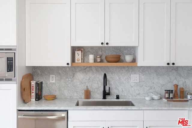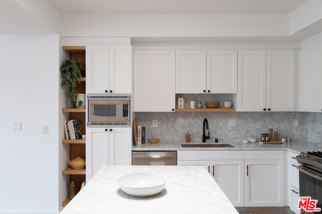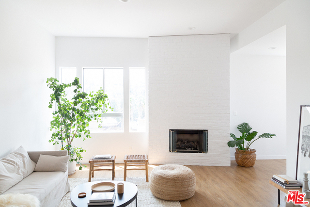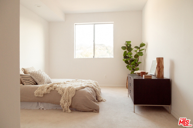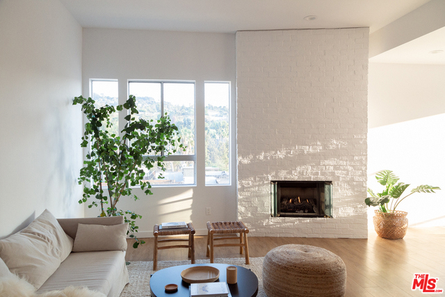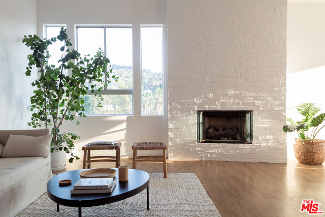 Light-filled corner penthouse condo with only one shared wall. Designer touches include high ceilings, kitchen with honed Carrera marble counter tops and new appliances, fireplace in living room, en-suite master bedroom with a walk-in closet, washer & dryer in the unit, dining area leading to a patio, and views of the surrounding hills. There are two side-by-side parking spots in the gated garage and ample guest parking. The building offers a pool, fitness center, business center and a welcoming access controlled lobby. Located on a quiet street, close to Woodbridge Park and Tujunga Village. Low HOA.