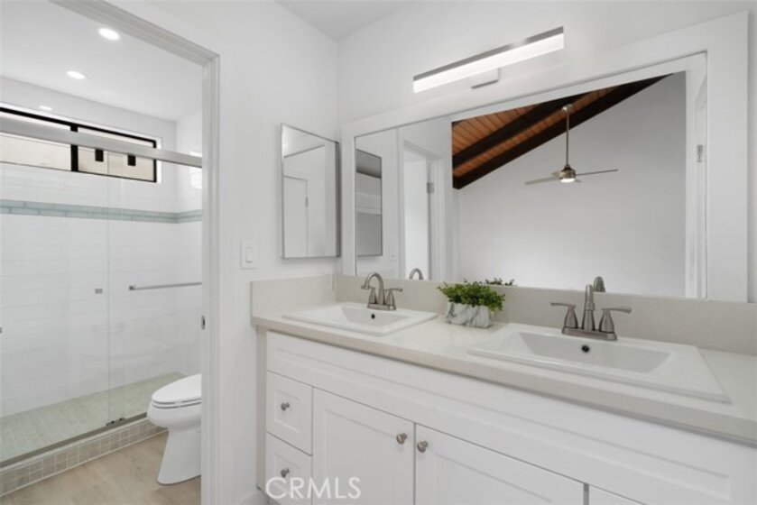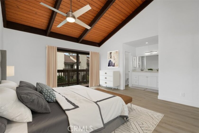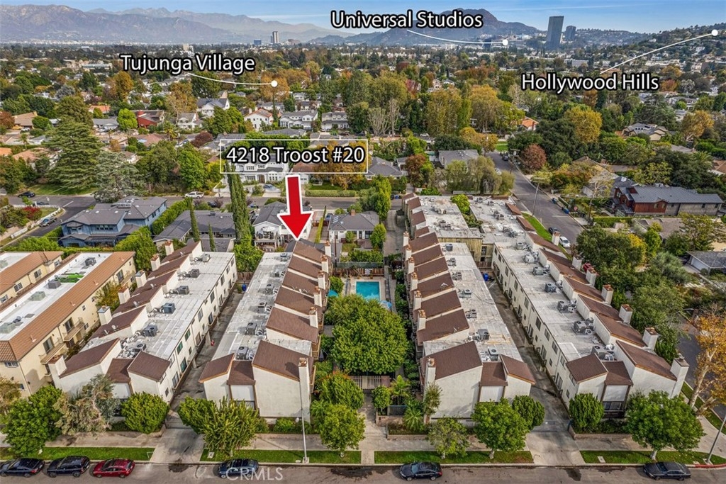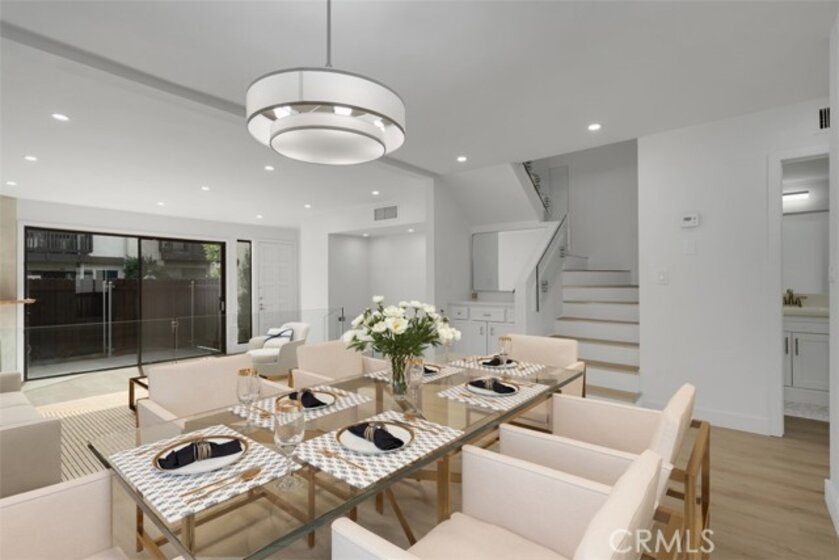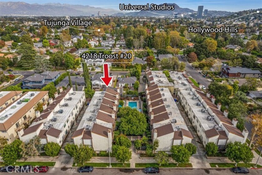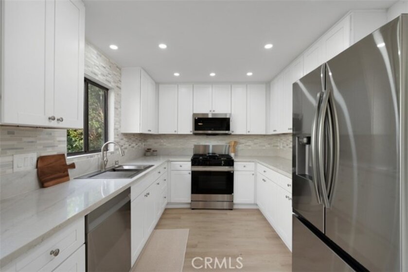 Nestled among the tree-lined streets of Colfax Meadows and within the boundary of the highly sought-after Carpenter Community Charter School, this spacious and light-filled townhome is on the market for the first time in over 30 years! Nearly every surface of this almost 1,800 sq. ft. end unit has been beautifully updated. Abundant natural light fills the home and designer LVP flooring flows through the main living areas, all bedrooms and stairs. Upstairs, in addition to 2 secondary bedrooms, you’ll find a stunning primary suite with open-beam ceilings, two large closets, and a balcony overlooking the courtyard and pool. The main level features a powder room, generous size living and dining areas, and a fully renovated kitchen with an eat in nook, brand-new cabinets, light gray quartz countertops, designer backsplash, and all-new stainless-steel appliances. The living room centers around a floor to ceiling smooth coat stucco fireplace with clear fire glass and a natural wood mantle, opening to a private patio with a new fence enclosure—perfect for dining al fresco or a small garden. Downstairs, the large direct-access two-car garage with brand-new epoxy flooring leads to a flexible bonus space with laundry hookups and new tile floors—ideal for a home office, gym, game room, or creative studio. Additional upgrades include all-new recessed lighting, new ceiling fans in the bedrooms and kitchen, new mirrored closet doors, modern frameless glass stair railings, and generous storage throughout. Located in one of Studio City’s most desirable neighborhoods with a thriving community, this home is moments from Ventura Blvd, Radford Studios, Tujunga Village, Trader Joe’s, the Farmers Market, and the area’s best restaurants, pubs, and boutiques. Welcome Home!