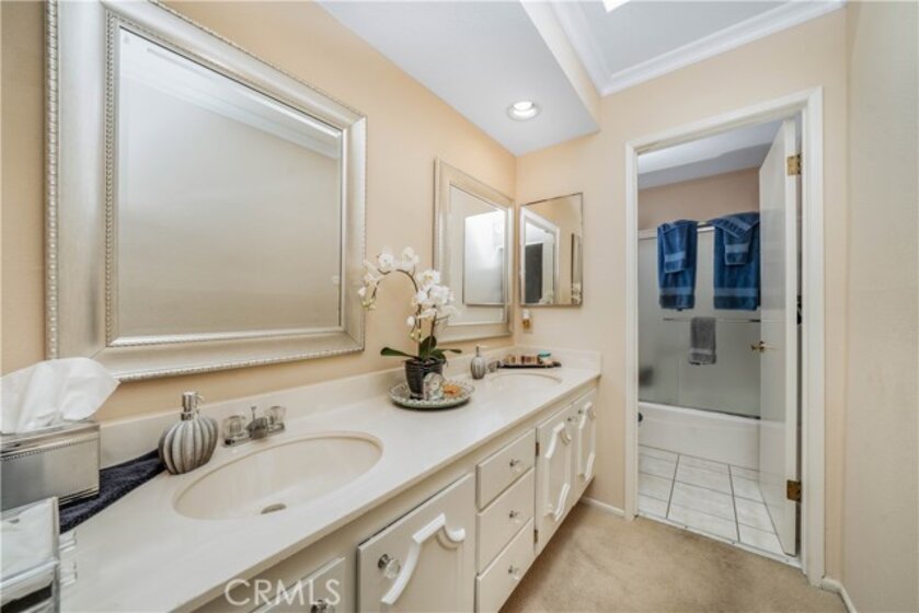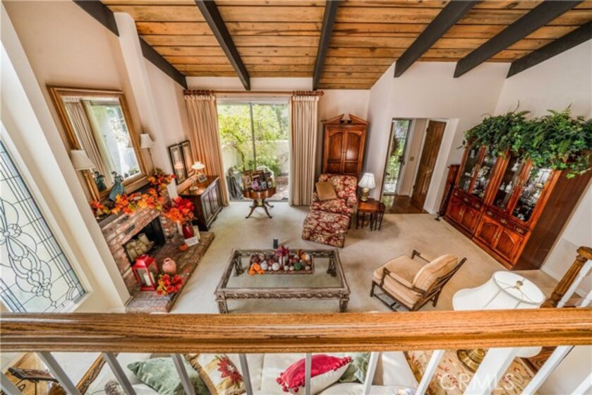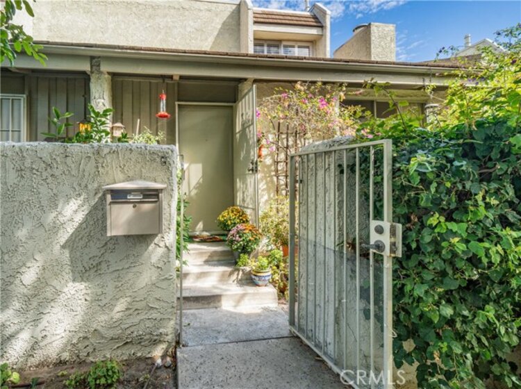 Welcome to this spacious tri-level, light-filled “End Unit” townhome, beautifully located within the highly sought-after Studio Village complex with a large greenbelt pool and spa very near the unit. A gated and walled, private brick garden patio serves as the entrance to a split-level floor plan, opening to a living room with soaring cathedral-beamed ceilings, a floor-to-ceiling south-facing window featuring gorgeous frosted stained-glass insets, a natural brick fireplace and hearth, and sliding doors leading to the private patio for BBQing and entertaining. The large dining area visible from the living room includes a wet bar with storage cabinets and connects to a bright galley kitchen featuring stainless steel appliances, custom tile countertops and backsplash, and a charming breakfast area connected to a family room/den (possible 3rd bedroom) with the addition of a wall, and an adjacent 3/4 guest bath and storage closet. Upstairs, two generously sized en-suite bedrooms feature large, screened picture windows, bathrooms, and walk-in closets. The primary bedroom features a fantastic window seat and an extra-large walk-in closet. A private direct-access two-car garage has two walls of built-in storage cabinets and a laundry area. The HOA includes earthquake insurance, on-site management, security patrol, landscape maintenance, cable TV/internet, water, and access to incredible amenities, including six heated pools, five spas, tennis & pickleball courts, and more. Located in the coveted Carpenter Community Charter School district and near Tujunga Village, Woodbridge Park, Ventura Blvds trendy shops, cafes, and the Sunday Farmers Market, this townhome truly is a rare find in a fantastic community.