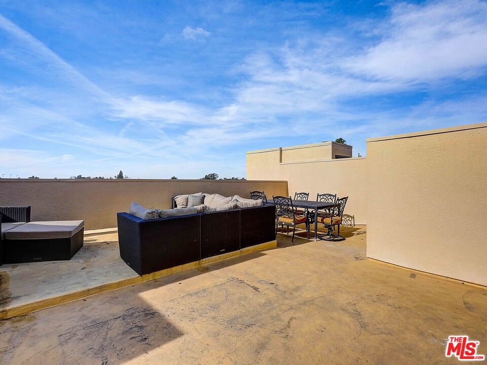 Lovely 2 bedroom/ 2 Bath Studio City condo, ideally located close to Tujunga Village and Ventura Blvd. Inviting, light-filled, open floor plan includes fireplace, tall ceilings, 2 balconies, wood floors, spa tub and in-unit washer dryer. Convenient living room staircase leads to a private rooftop terrace, ideal for entertaining, bbq-ing and enjoying skyline views for miles. Situated in a stylish 13-unit building, amenities include elevator, gym/ billiard room, sauna, keyed entrance and two designated parking spaces.