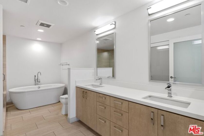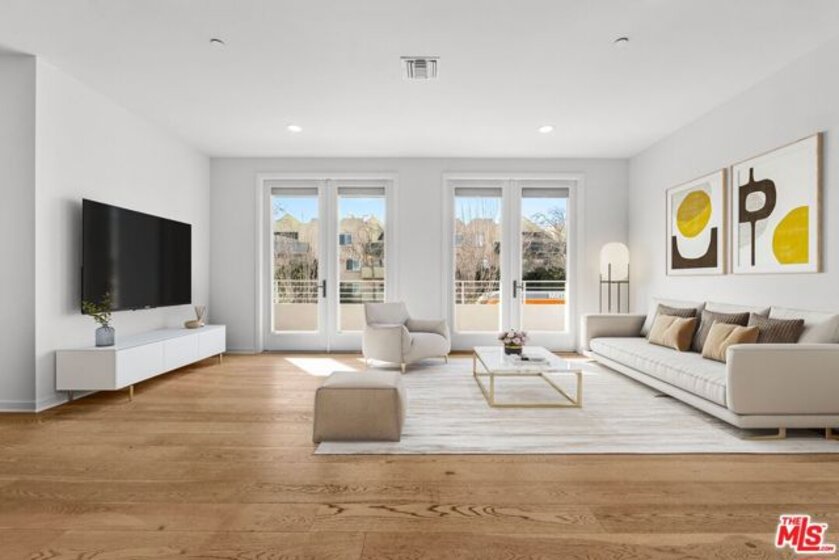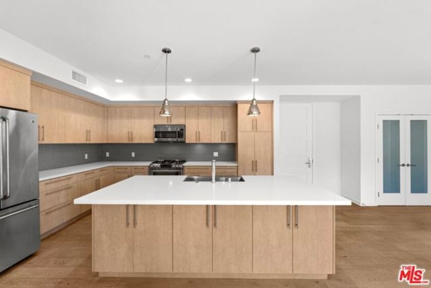 Experience unparalleled luxury in this contemporary front-facing condo, located in the vibrant heart of Studio City. As you step inside, you're welcomed by an expansive open-concept floor plan, accentuated by soaring ceilings that create an airy, light-filled atmosphere. The gourmet chef's kitchen is a true masterpiece, featuring premium stainless-steel GE Cafe appliances, sleek Caesarstone countertops, and a massive island with ample seating perfect for both casual meals and entertaining. The spacious living room offers two sets of French doors that seamlessly connect to your private balcony, creating an effortless flow between indoor and outdoor spaces. The adjoining dining room is an elegant setting for hosting memorable dinner parties or intimate gatherings with friends and family. The luxurious primary suite is a true retreat, boasting a generously sized walk-in closet and a spa-inspired bathroom with a deep soaking tub, oversized shower, and dual vanity sinks - the ultimate in relaxation and comfort. Two additional well-appointed bedrooms offer ample closet space, with one featuring its own ensuite bath, providing comfort and privacy for family or guests. Noteworthy features throughout the condo include wide-plank engineered oak floors, energy-efficient Milgard dual-pane windows, in-unit laundry, and two tandem parking spaces with an option to install electric car charging station in the secure, gated subterranean garage. The building's premium amenities are designed to enhance your lifestyle, including a fully equipped fitness center, a stylish meeting room, a rooftop patio with panoramic views, bicycle storage, and generous guest parking. Perfectly positioned in one of Studio City's most coveted neighborhoods, this home offers easy access to the best shopping, dining, and entertainment along Ventura Blvd, all within the esteemed Carpenter School District. This is the epitome of sophisticated living in one of LA's most desirable areas.