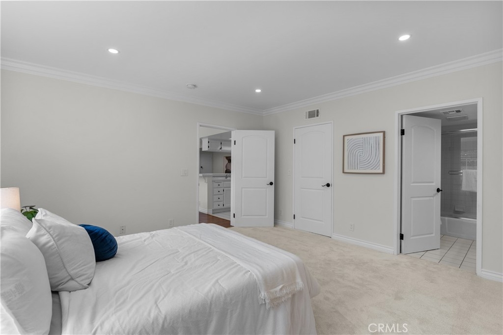 Top floor unit with 2 bedrooms and 2 bathrooms and 1151 square feet!! Located in the heart of Studio City, this condo exudes elegance, offering an unparalleled living experience. As you step into this beautiful home with updated recessed lighting, fresh painted walls, you are greeted by an open and airy floor plan with new plush carpeting, and laminate flooring, that seamlessly integrates style and functionality. The spacious living area features large windows that flood the space with plenty of afternoon sunlight, creating a warm and inviting atmosphere. The kitchen is a dream, brand new dishwasher, sleek countertops, and ample storage space, perfect for entertaining guests or enjoying a quiet meal at home. DUAL Primary suites with walk-in closets, a true retreat, and an ensuite bathroom. The bathroom is equipped with a large vanity and a tub. Additional highlights of this home include in-unit laundry, central air conditioning, and secure underground parking. The building is gated with security cameras, and plenty of guest parking. HOA dues include earthquake insurance. Located in one of the most desirable neighborhoods, this residence is just moments away from the vibrant Ventura Boulevard, where you can indulge in a variety of dining, shopping, and entertainment options. The building itself offers a range of amenities, including a sparkling pool, and meticulously maintained communal areas, enhancing your living experience!