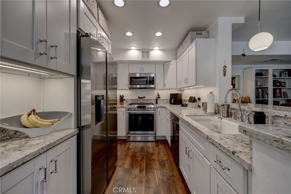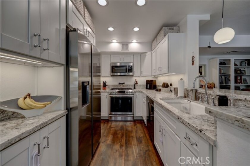 An oasis centrally located in bustling Studio City! An incredible corner unit with a majestic wrap-around balcony! Sit and relax in the morning with the sunlight sparkling on the leaves of the surrounding trees; or later, sit in quiet privacy and immerse yourself in soothing views of the blue sky and the mature trees surrounding you. Absorb the quiet beauty everywhere around you and yet you’re just a block to Ventura Blvd and - and a stroll to the Sportsmen's Lodge's new mall and all that it has to offer: unparalleled offerings! fabulous shopping, dining, boutiques.. AND we're in the zone of excellent public, charter, private and parochial schools all within walking distance. The interior's layout is superb. It further enhances the peaceful living experience. With two sliding glass doors on either side of the living room's fireplace, the natural beauty surrounding your home is brought inside to the open-floorplan concept where the kitchen opens to the dining area and living room through a breakfast bar –making it easy to interact with your guests when you entertain or with your family while you prepare a meal. There are two primary bedrooms with en-suite bathrooms, each separated from the other by the dining and living spaces, a floor plan that accommodates roommates, a family, a separate home-office, or an inspiring views for a studio. To highlight just some of the elements that make this home a HOME are: stainless steel appliances, in-unit laundry, quiet ceiling fans, an elevator, and pool & spa. Did we emphasize the location enough? We’re walkable to The Boulevard’s restaurants, coffee houses, shopping, boutiques, supermarket… in short: we're in the heart of downtown Studio City. Minutes to Beverly Hills through Coldwater Canyon and to downtown via Hollywood FWY (101) and to the Studios (via FWY 134.) Central and yet peaceful. EQ Insurance!