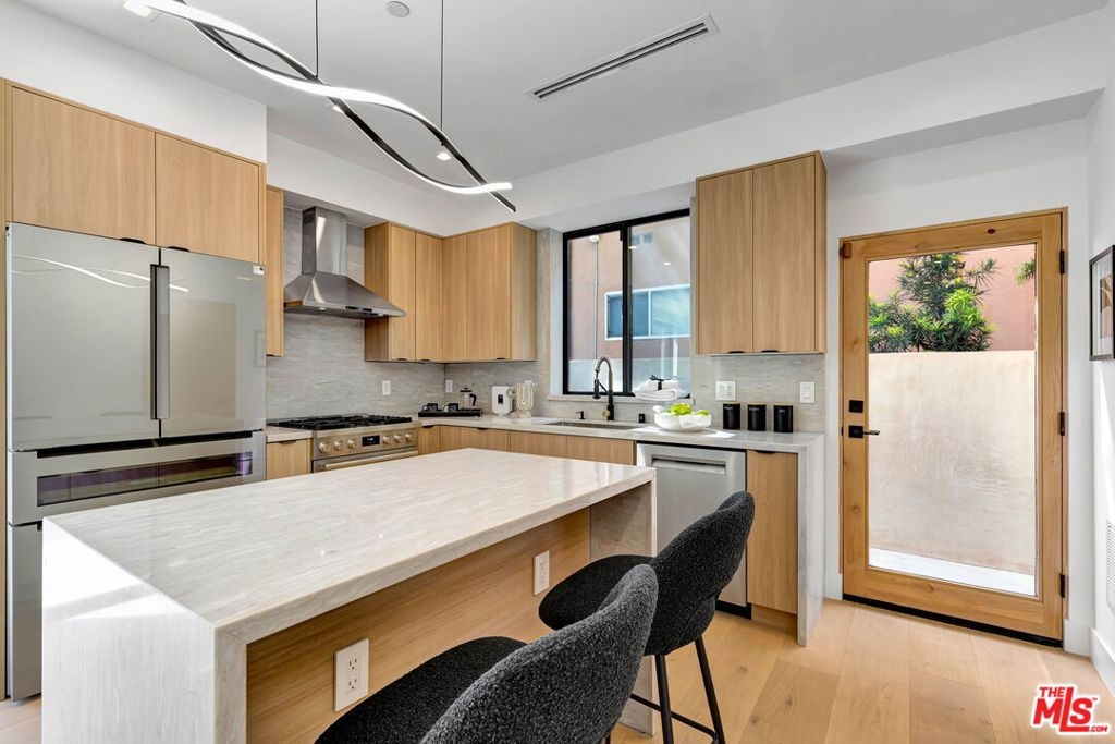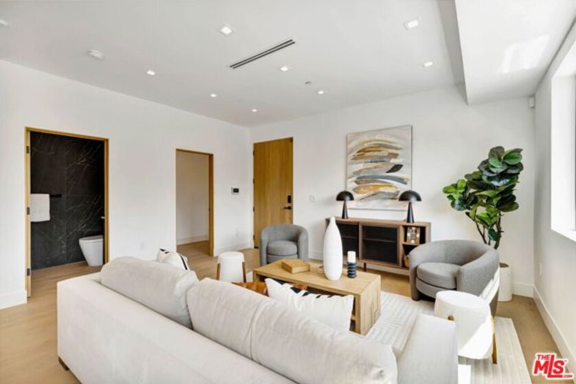 TOWNHOME #1 is located on a quiet cul-de-sac in the heart of Studio City and offers a newly built 4BR/4.5BA layout with a bright, open floor plan. There is a seamless flow between the living area, dining space with access to an outdoor entertaining patio, and a kitchen designed for both daily use and hosting, complete with stainless steel appliances, quartz counters, custom cabinetry, and a center island. The entry level also includes a laundry room with hook-ups, powder room, and additional storage. Upstairs are four en-suite bedrooms, each with its own private balcony, offering flexibility for guests, work-from-home, or long-term living. Two of the suites function as primary retreats featuring dual-sink vanities and step-in showers with frameless glass enclosures. Above, a private rooftop deck captures city lights, mountain views, and evening breezes, creating an ideal setting for entertaining or unwinding. Located within the Carpenter Community Charter School district and just moments from Ventura Boulevard's cafes, restaurants, boutiques, fitness studios, and the Studio City Farmers Market, along with nearby parks, hiking trails, and major studios. Gated tandem parking for two. New construction. Townhomes #2 and #3 may also be available for private showings by appointment.