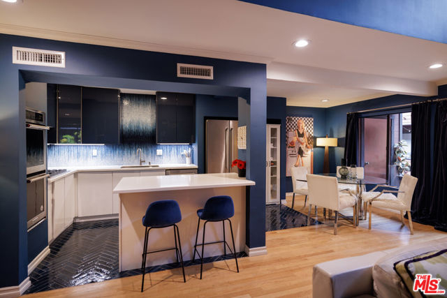 Welcome to your dream home in the heart of Studio City. The designer-done loft-style condo is a spacious one-bed, two-bath spanning 1,271 square feet of security, serenity and style. Remodeled in 2021, the sophisticated residence offers a lifestyle of luxury and convenience in one of Los Angeles' most coveted neighborhoods. Perfect for professionals, creatives or those seeking a calming urban retreat - this move-in-ready gem is designed to impress. Step inside to discover an expansive open floor plan enhanced by the double-height living room ceiling, custom bookshelf and cozy fireplace. The seamless flow between the living, dining, and kitchen areas creates an inviting atmosphere, perfect for hosting gatherings or enjoying quiet evenings at home. The kitchen is a chef's delight, boasting high-end stainless steel Kitchen Aid appliances, custom cabinetry and an oversize quartz countertop island that doubles as a breakfast bar. Ample storage and designer fixtures elevate the space, making it as functional as it is beautiful. All tile in the home is from Mission Tile West, which gives this unit its unmatched luxury and designer feeling. Upstairs, the generously sized bedroom serves as a private perch above the more public area below. The large suite is complete with its own balcony, walk-in closet and abundant natural light. The en-suite primary bath is a spa-inspired retreat, featuring vanity, luxurious soaking tub and shower finished with Zellige tile. The custom shelving serves the dual function of storing towels and creating privacy. Guests have their own equally well-appointed powder room with premium fixtures and finishes downstairs off the living room. This one has an old Hollywood glamour vibe. The full-size washer/ dryer sits behind a dark green velvet curtain for completion of the Hollywood feel in this stylized guest bath. No detail was overlooked during the 2021 remodel, which introduced smart home technology, and recessed lighting throughout. Walls were skim-coated with plaster to create a smooth, modern finish, supporting the rich tones of the wall paint, adding to the freshness and high-style of the remodel. The unit includes central air & heat, separate desk/ workspace area and dining areas. EQ insurance is covered by the HOAs. Residents will appreciate the secure, gated, two-car parking with dedicated EV charger - plus additional private storage and bike room. Nestled in prime Studio City, this home offers unrivaled access to the best of Los Angeles living. Just steps away, you'll find the iconic Ventura Boulevard, lined with trendy boutiques, gourmet restaurants, and cozy cafes. You're close to Studio City Public Library, Beeman Park and local favorite Coffee Fix. Plus Oy Bar - 8.2 on Infatuation and list for Best Burger in LA and Eaters lists for Best Martini in LA (just sayin'). Sportsmans Lodge (Erewhon, Equinox, Sugarfish), Whole Foods, Gelson's, Ralphs and the famed Studio City Farmers Market are all in the neighborhood. For outdoor enthusiasts, the Fryman Canyon Park and Wilacre Park offer miles of hiking trails with big views. This unit represents an opportunity to own a meticulously updated home in one of LA's most desirable neighborhoods. With its modern design, premium appointments and unbeatable location, this property is perfect for those seeking a blend of luxury and lifestyle. Whether you're a first-time buyer, downsizing, or investing in a high-demand rental market, this Studio City gem checks every box.