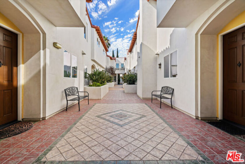 Santa Barbara Spanish style townhouse located in an exclusive 12 unit complex in prime Studio City and prestigious Colfax Elementary school district. This stunning home offers an open concept floor plan on the main level for modern living and private balcony with treetop, natural views. Chef's Kitchen with stainless steel appliances and ample cabinetry for storage and breakfast bar. The generous Primary Suite with vaulted ceilings features a walk-in closet and en-suite spa bathroom with dual vanities, contemporary glass shower and soaking tub. 2 more spacious bedrooms complete the upstairs quarters. The lower level offers a bonus room, laundry area and direct access to the private 2-car garage with side-by-side parking. Lush greenery with elegant curb appeal and manicured center courtyard welcome you to this beautiful home. Just minutes from shops, restaurants on Ventura Blvd, Tujunga Village and all that Studio City has to offer!